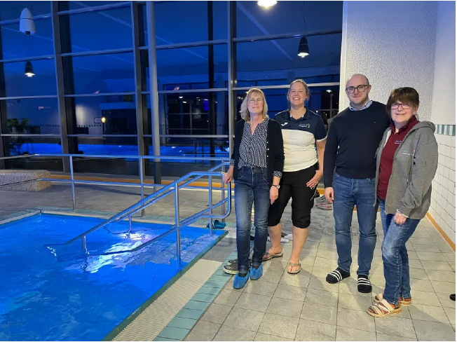 Stolz auf ihr Bad sind Astrid Weber, die die Finanzierung begleitethat, Badleiterin Ilona Hagedorn, Fachbereichsleiter Philipp Retzlaffund Mitarbeiterin Claudia Krause (v.l.).