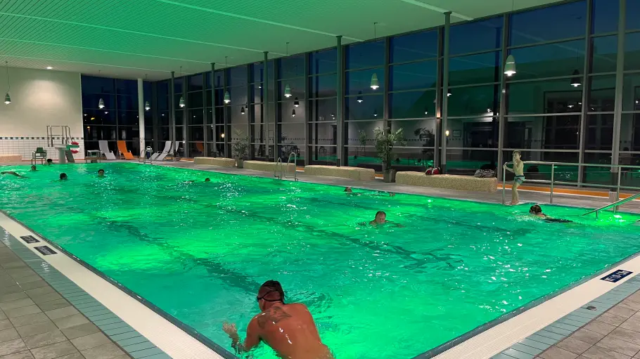 Vorher schwamm es sich in Dissen recht trist, fast schon klinisch und vor allem schlecht beleuchtet, da die Schwimmer nur von oben angestrahlt wurden, doch …